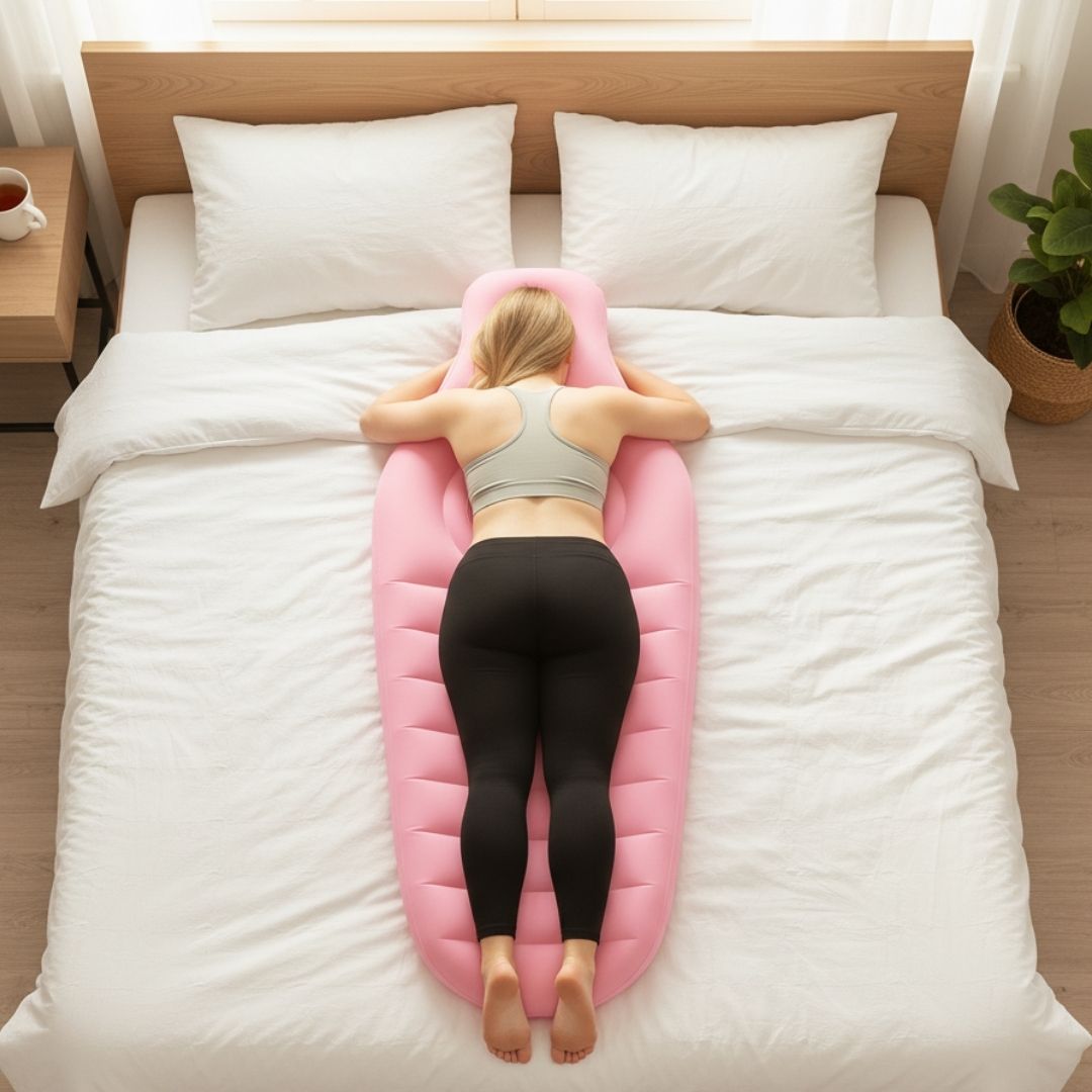 The truth is, most pregnancy pillows only support from the sides, not where the pressure actually builds your belly, hips, and lower back.